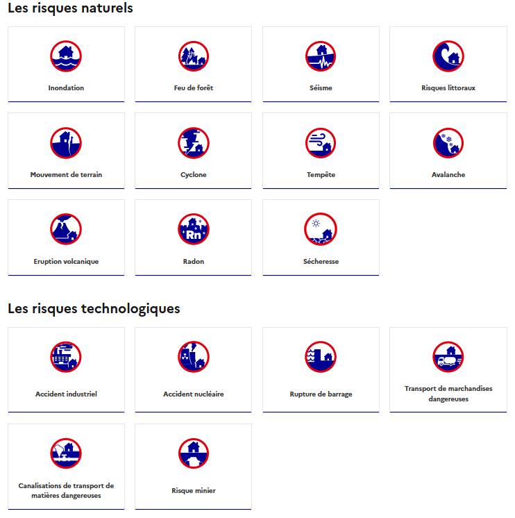 Les nouveaux pictogrammes représentant les risques majeurs sont disponibles en téléchargement, afin de les intégrer dans vos outils d'information (DDRM, DICRIM...) ou de communication (présentations, exercices...).