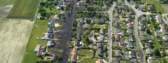 Vue par drone de la zone située entre Gidy et Cercottes (Loiret) après les inondations par ruissellement de fin mai-début juin 2016 © T. Dewez - BRGMLe BRGM est l'établissement public de référence dans le domaine des sciences de la Terre pour gérer les ressources et le...