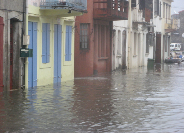 Inondation par submersion marine lors de la houle cyclonique OMAR du 16 octobre 2008 (St-Pierre, Martinique, 2008). © BRGM - A.-V. Barras