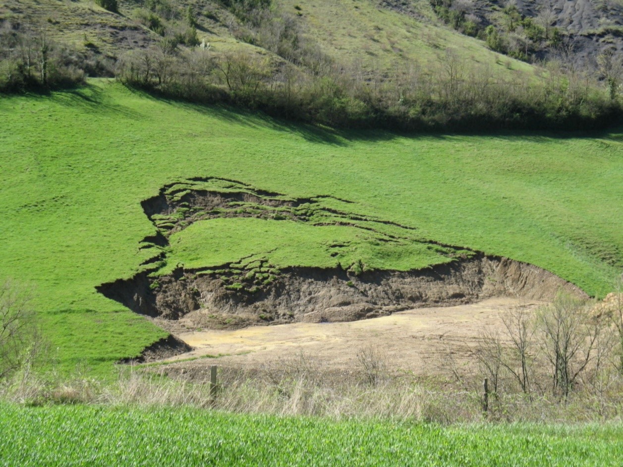 Les glissements de terrain actifs présentent des indices caractéristiques : niches (ou cicatrices) d’arrachement, fissures et fractures du terrain, bourrelets de matériaux, arbres basculés, zones de rétention d’eau, fissuration des bâtiments, déformation des voies de circulation…