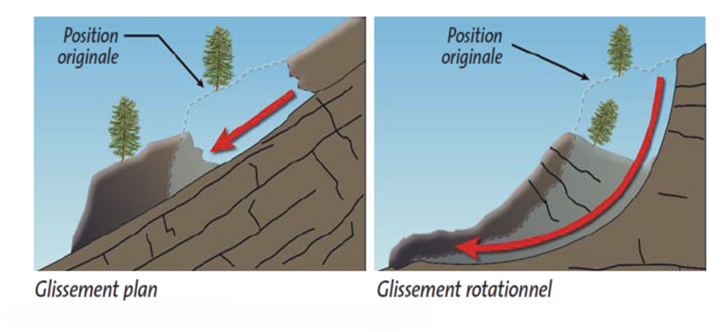 Trois types de glissement sont distingués en fonction de la surface de rupture :