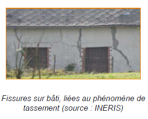 Il s’agit d’un mouvement de terrain progressif (dynamique lente) qui est lié à la présence de grandes zones exploitées à plus grande profondeur (de quelques dizaines de mètres à plusieurs centaines de mètres), il se manifeste par le tassement progressif des terrains de surface et la formation d’une cuvette d’affaissement