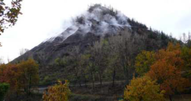 Certains dépôts miniers contiennent des matériaux combustibles et d'autres matières oxydables. Certains dépôts peuvent entrer en combustion.