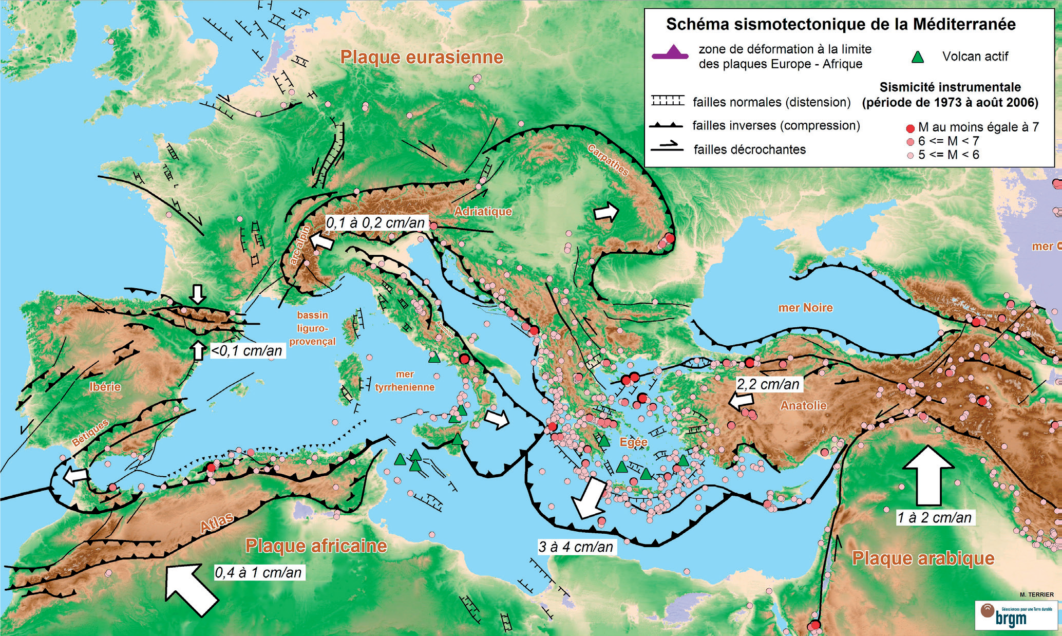 • des séismes intraplaques superficiels dont les magnitudes peuvent aller jusque 6.5.