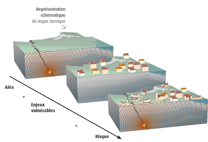 Schéma des principales composantes du risque sismique © BRGM