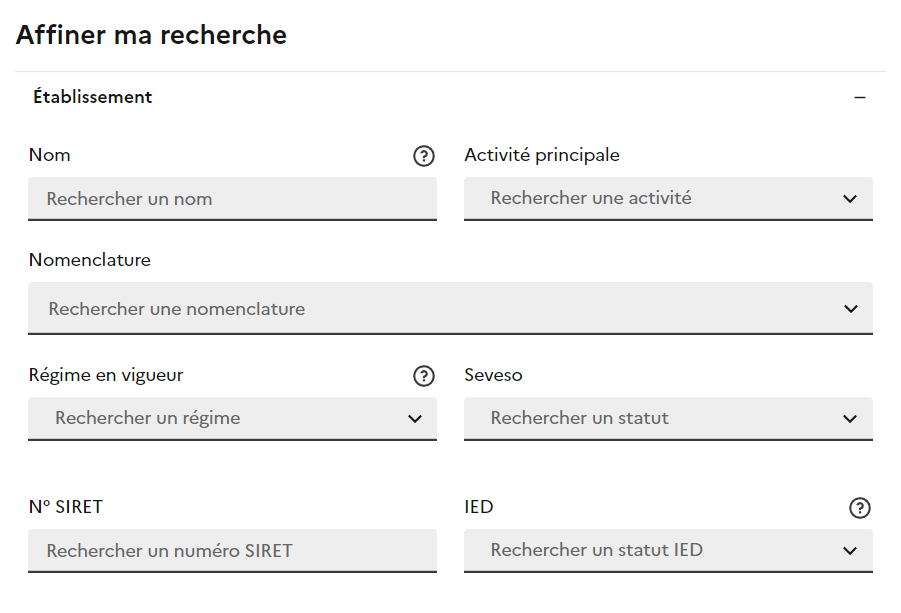 Les utilisateurs peuvent désormais filtrer les éléments en fonction du numéro de Siret et de l'IED, facilitant ainsi la recherche de données.