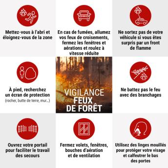 Pour connaître les bons comportements à adopter, consultez le site de la campagne de prévention contre les feux de forêt et de végétation du ministère de la transition écologique.